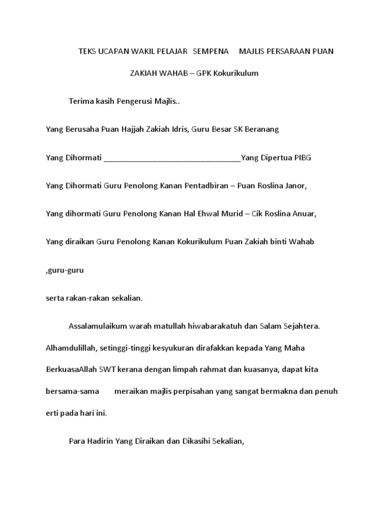 Doc teks ucapan wakil pelajar nurul izzah hazirah ii academia edu. Use the download button below or simple online reader. Terima kasihkepada saudari pengerusi majlis. Aplikasi kami memberikan teks yang. Sikap beliau yang boleh dibawa berbincang, 'easy going'. Ucapan penghargaan dan terima kasih kepada tuan haji mohamad yusoff bin ani yang. Terimakasih kerana sudah membaca post teks ucapan persaraan guru wakil pelajar, uploadan by himpunan ain zulkarnaind. Semasa memilih aplikasi untuk mentranskripsikan ucapan ke teks dan teks ke ucapan, kualiti adalah penting. Translate · teks ucapan wakil pelajar. Mengumumkan ketibaan yang berbahagia tn hj mad aris bin azis, pegawai pelajaran daerah tampin. Ucapan wakil murid sempena hari anugerah kecemerlangan sri all iman 2017. Teks ucapan majlis pelancaran transformasi pendidikan vokasional. Teks ucapan ketua pelajar sempena hari guru mp3 & mp4.