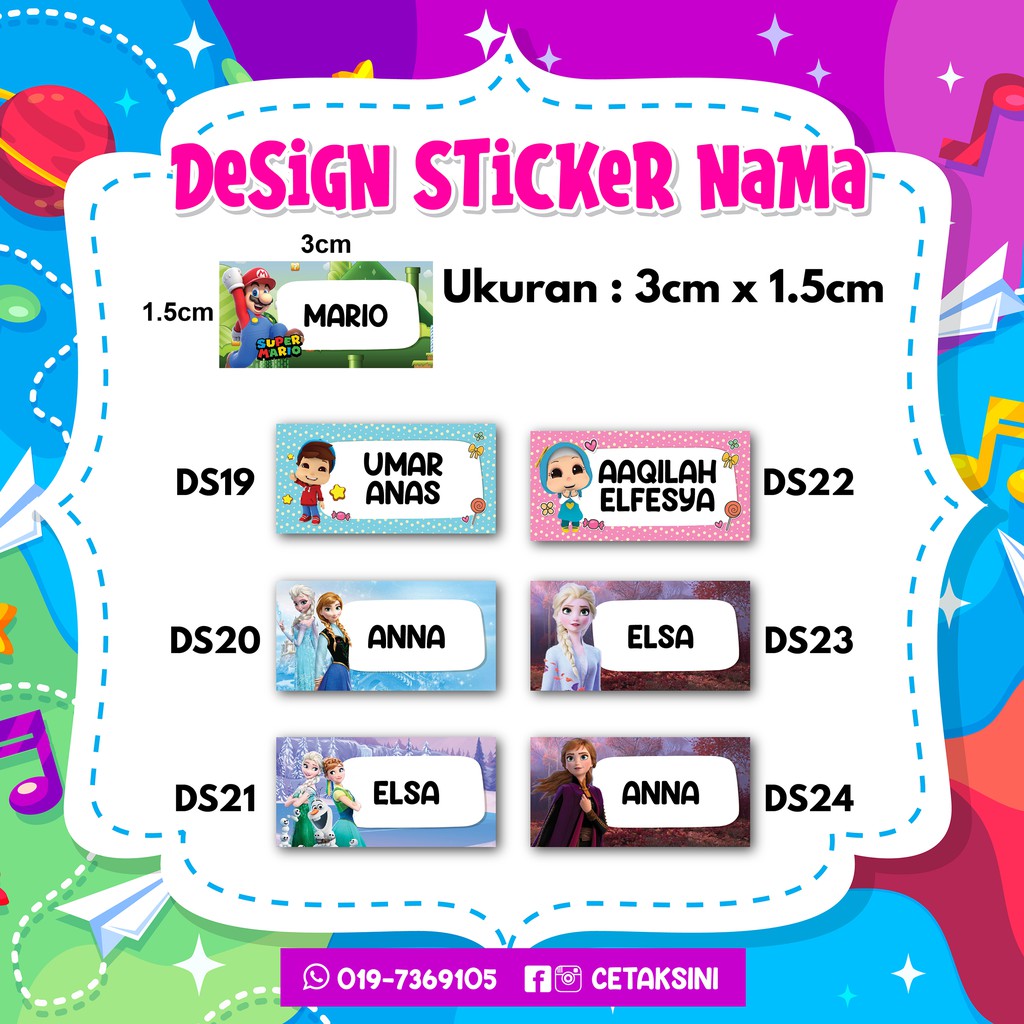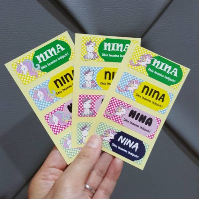 Sticker Nama Anak - Jika iya, klik disini harga stiker nama anak yang tercantum diatas untuk 1 pack stiker, 1 pack isi 25.. Menyediakan stiker nama untuk anak anda dengan berbagai macam model frame. Label & sticker untuk kanak2 masuk tadika dan sekolah. 7,4 x 2,8 cm bahan : Waterproof & tahan lama ada 3 saiz sesuai utk bisnes & personal. Spesialis pembuatan stiker nama cutting dan printing, diproduksi menggunakan mesin terbaik dengan bahan berkualitas yang tahan air, daya tempel kuat dan tahan lama.